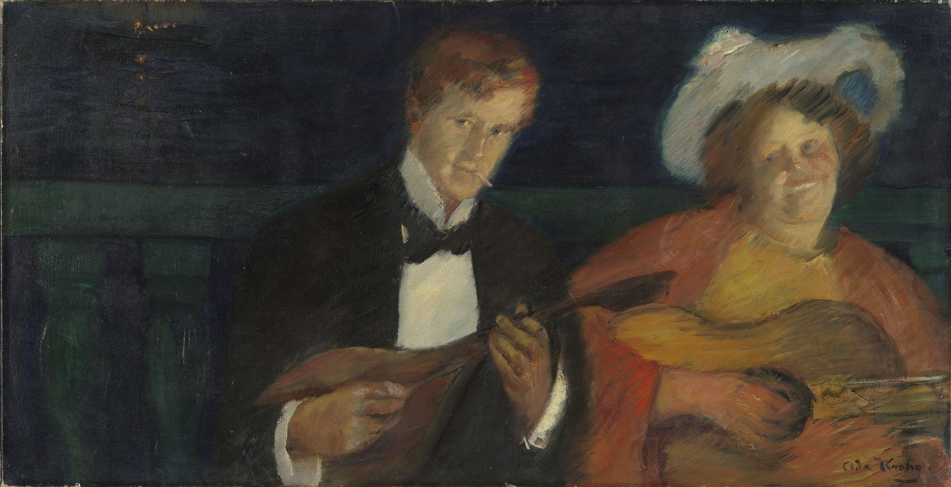 Hans står klar for å gi Oda en pjolter. Oda ligger på sjeselongen. Hun har tatt ut hårnålene, så håret er i uorden. På bordet ligger det spillkort, men det virker ikke som noen spiller lenger. Christian står med en bok i hendene, og det ser ut som han leser høyt fra den.